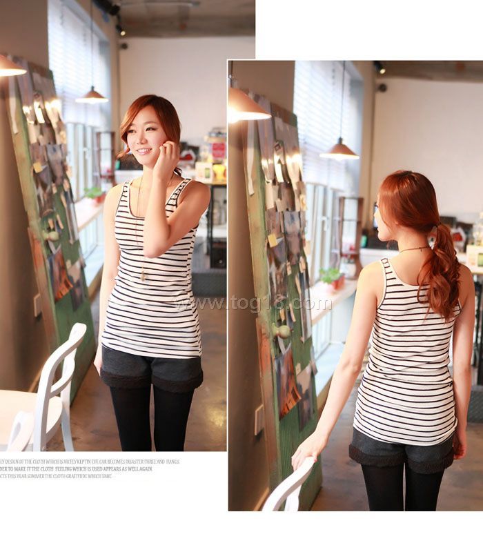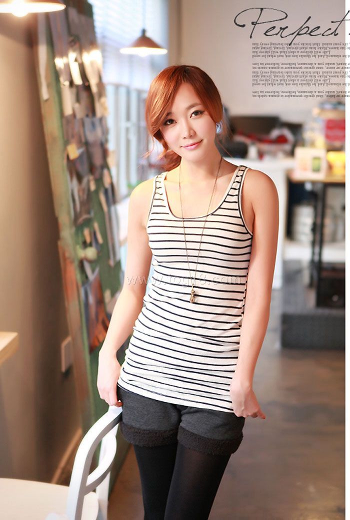新款2012时尚修身显瘦 百搭全棉针织罗纹背心条纹