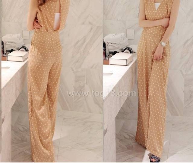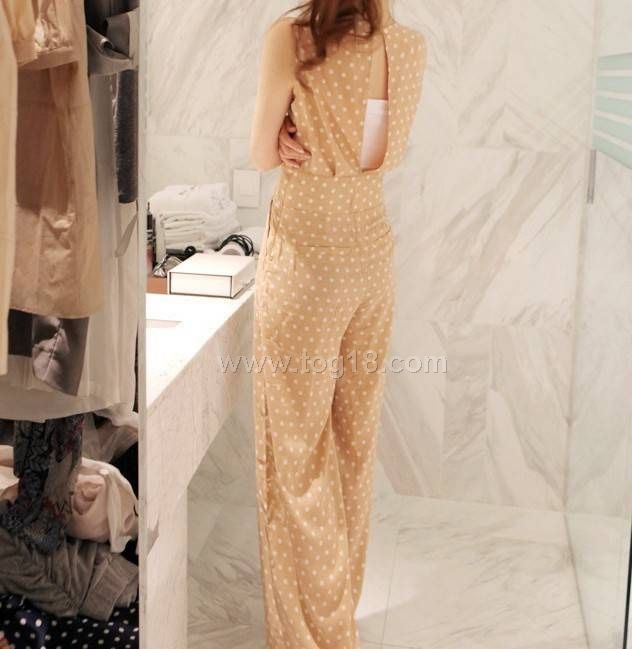 2012夏装新款 波点修身v领后背镂空无袖阔腿连体裤(送裹胸)