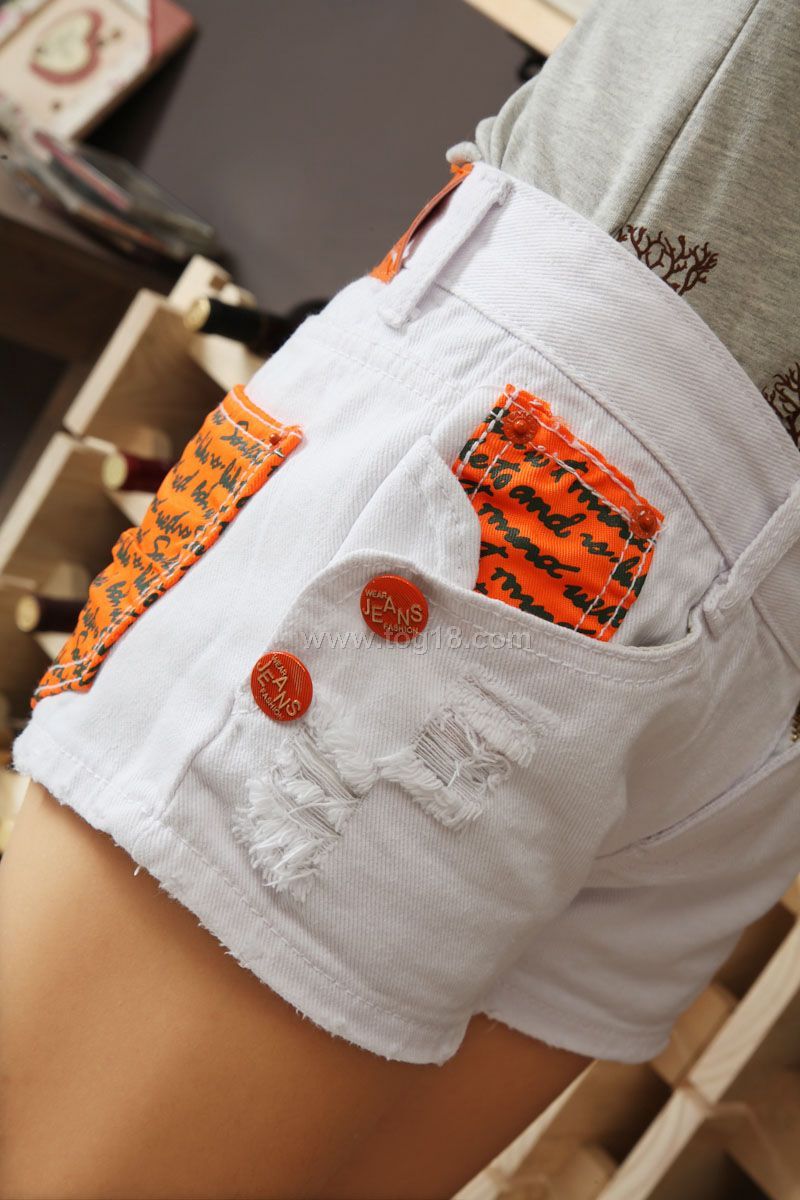 2012夏装新款显瘦糖果磨破排扣牛仔拼接短裤热裤