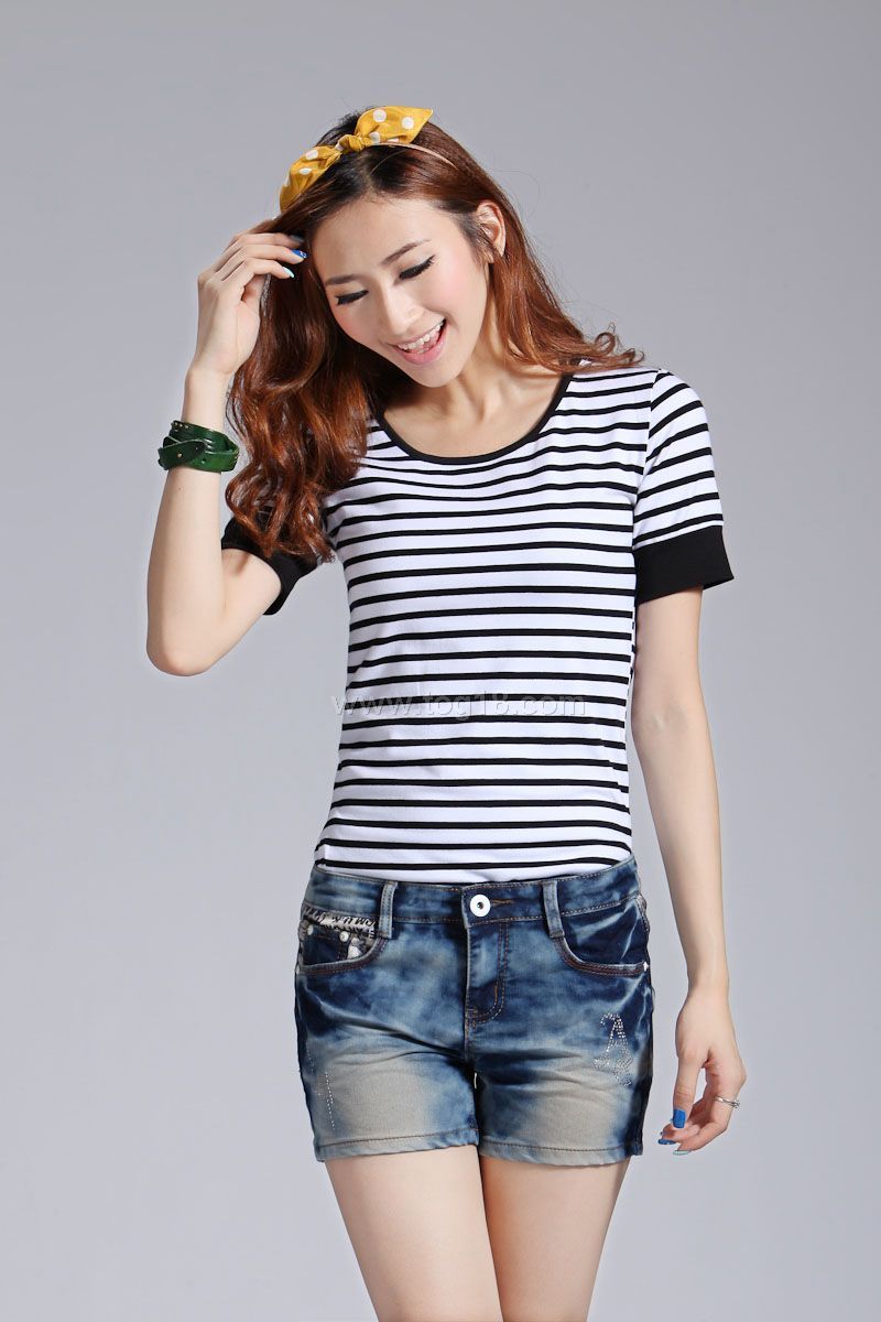2012款长点的四分裤弹力中腰牛仔短裤 显瘦翻遍热裤
