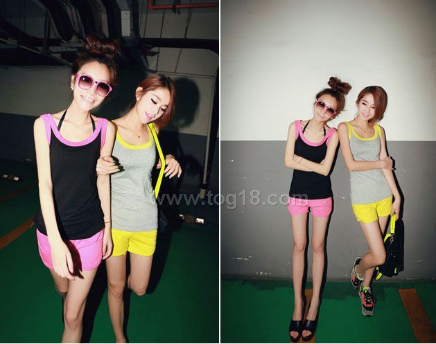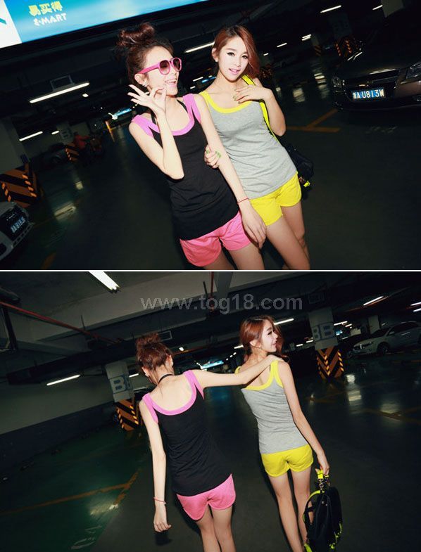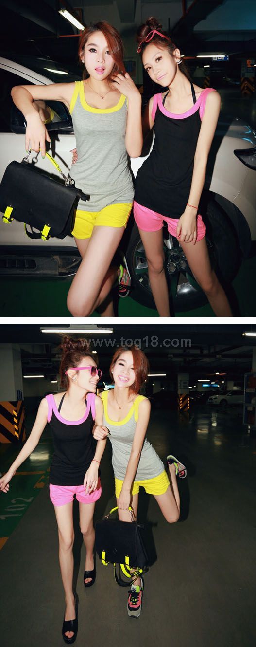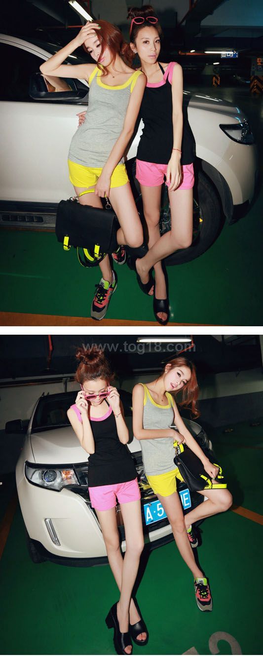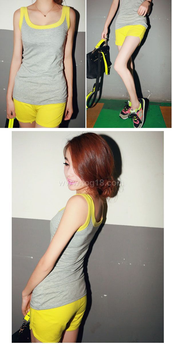 2012超爱自留 多功能荧光撞色休闲套装短裤+背心设计T恤版