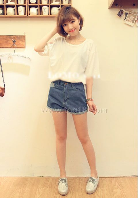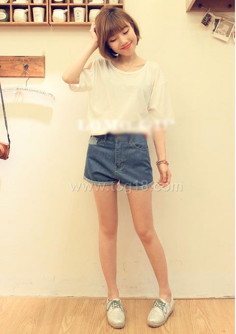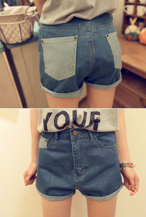 2012复古潮高腰显瘦宽松卷边个性后袋牛仔短裤