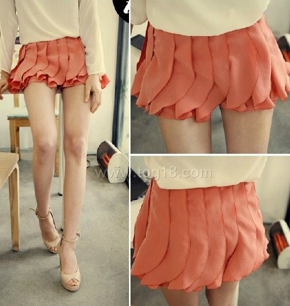 韩国层层荷叶 风琴甜美精致花瓣叶剪裁花苞树叶裙裤短裤子