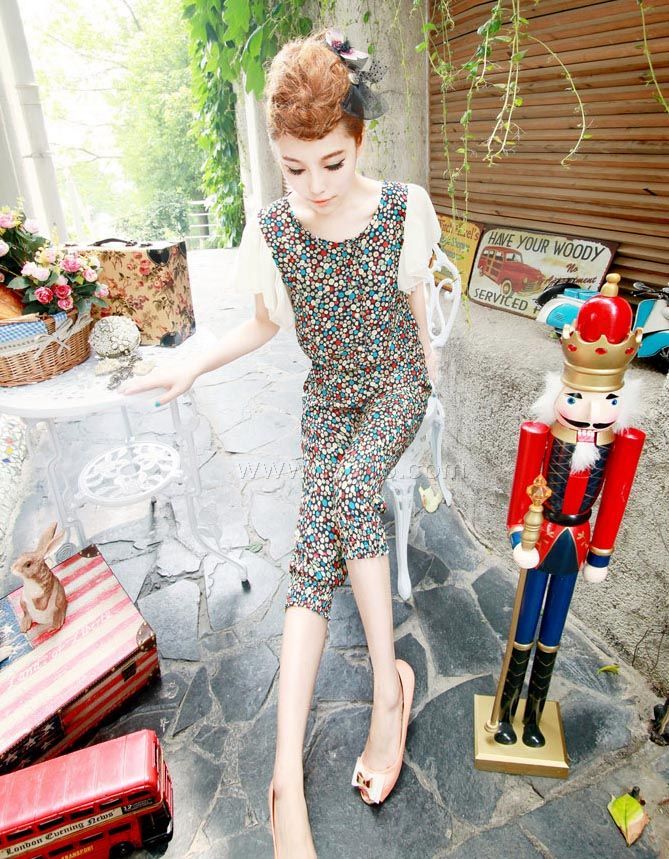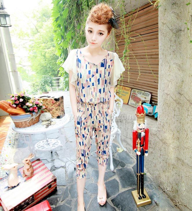 2012新款舒适飘逸白色雪纺荷叶袖连身裤