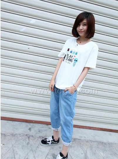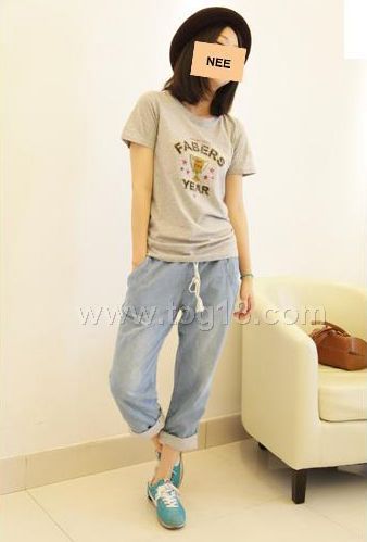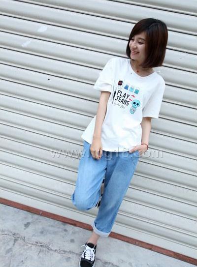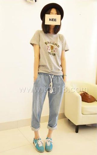 2012小清新 夏日必备BF欧美风细条纹抽带休闲牛仔七分裤