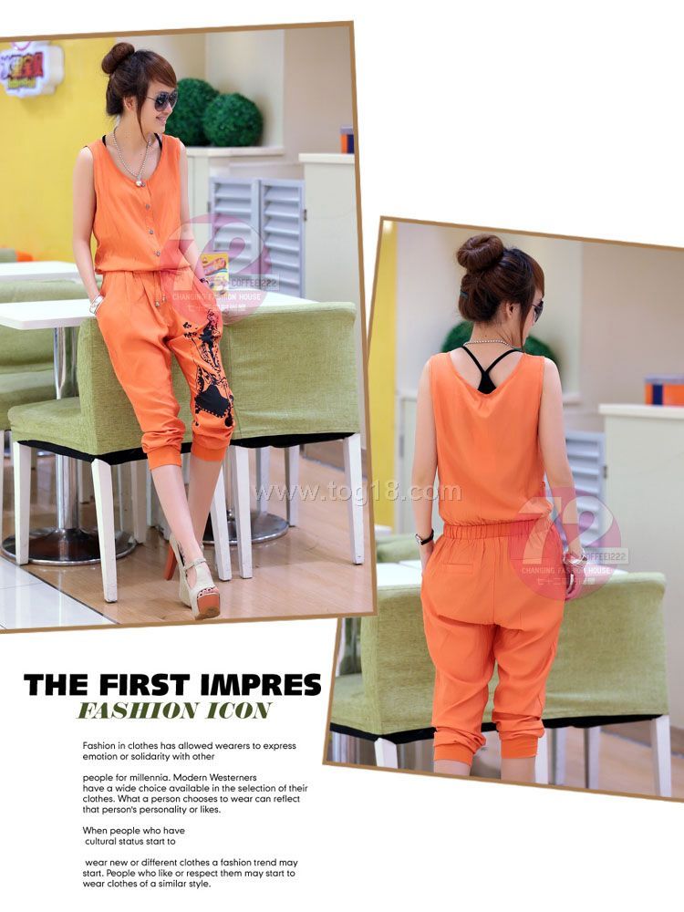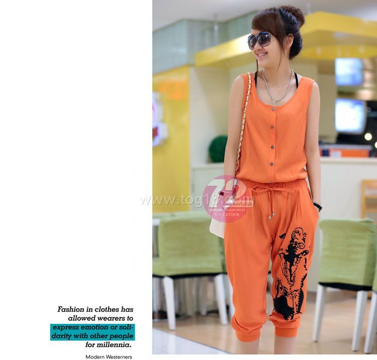 韓版2012夏裝新款森女印花背心糖果休閒七分連體褲