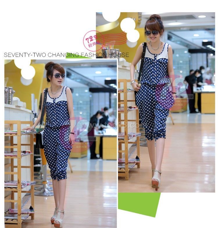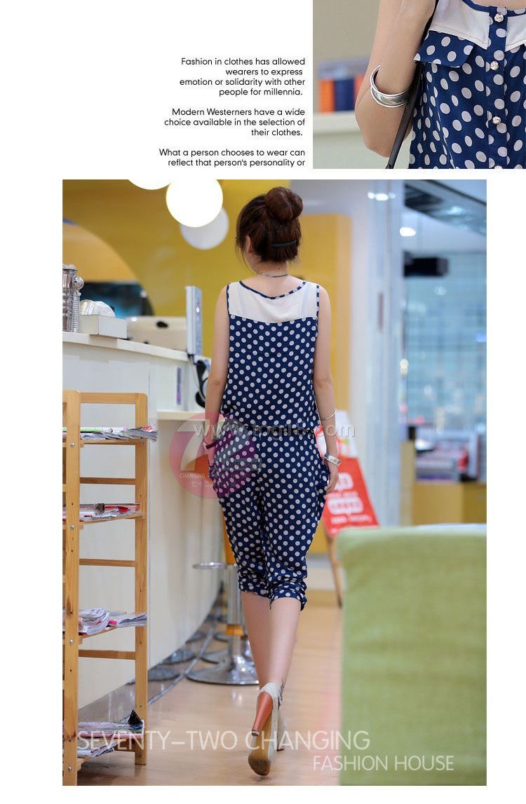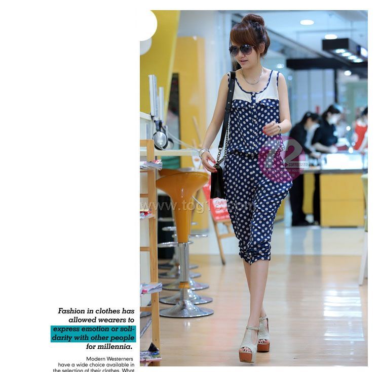 在炎熱的夏季覺得搭配衣服很繁瑣?試試這款鬆緊腰連體褲吧!本款YY的材質手感柔軟懸垂性好穿著舒適;而且濕性能和透氣性能都非常的不錯哦,夏天的時候吸汗排氣可是保持涼爽的法寶哦~連體褲的圖案以如今最為流行的波點元素,再加上簡約的版型設計一定能呈現出一個散發乾練爽朗的女性氣息的你!