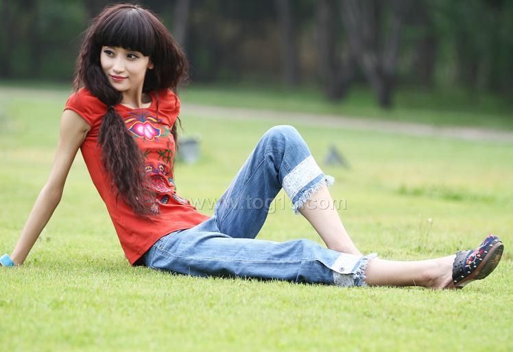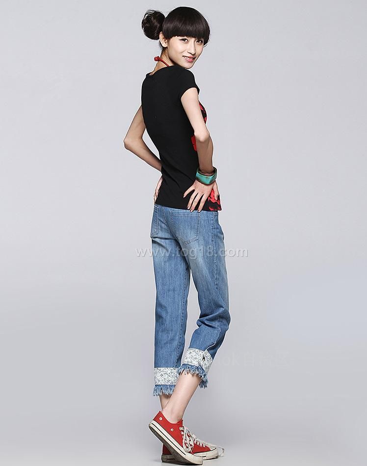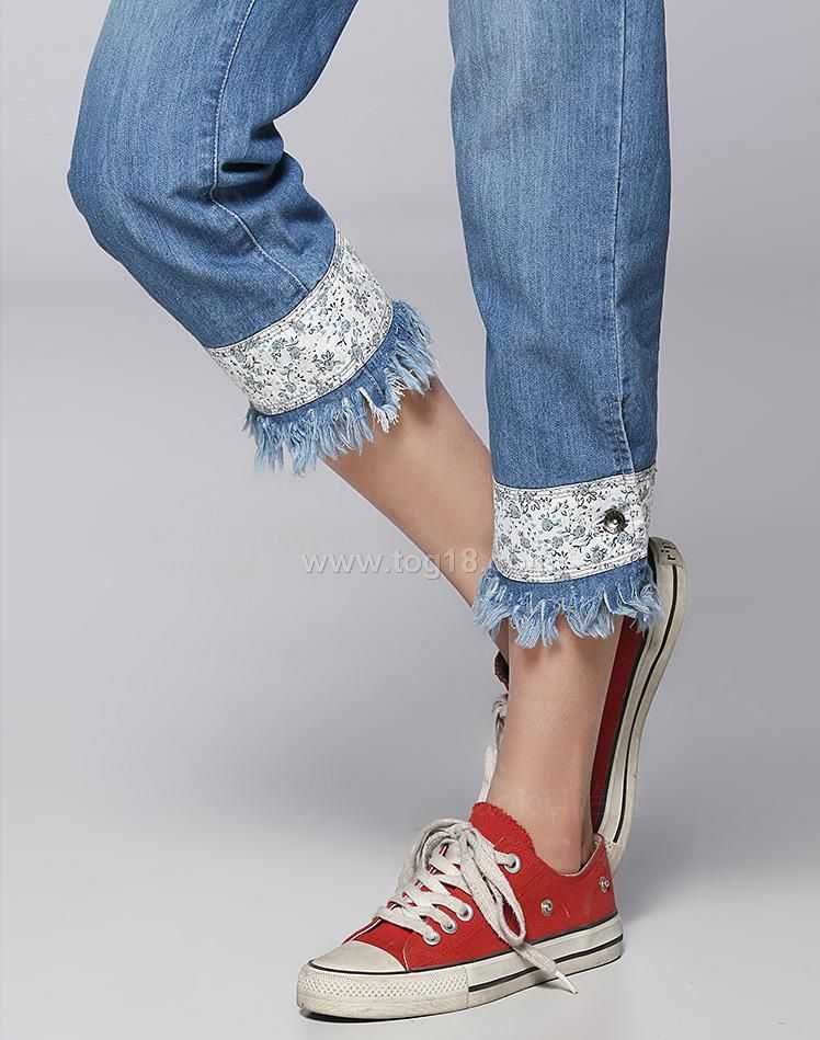 廠家直銷 2012新款夏裝 直筒拼接毛邊 七分牛仔褲