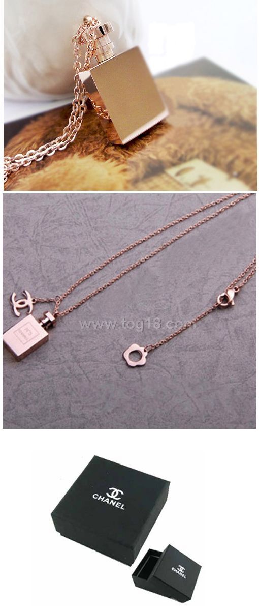 欧美 大牌款 钛钢 香水瓶Chanel 短项链 锁骨链