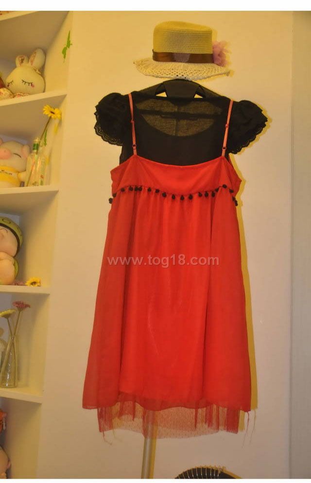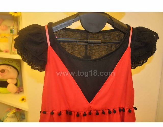 特價!花邊袖T+吊帶雪紡連衣裙 兩件套