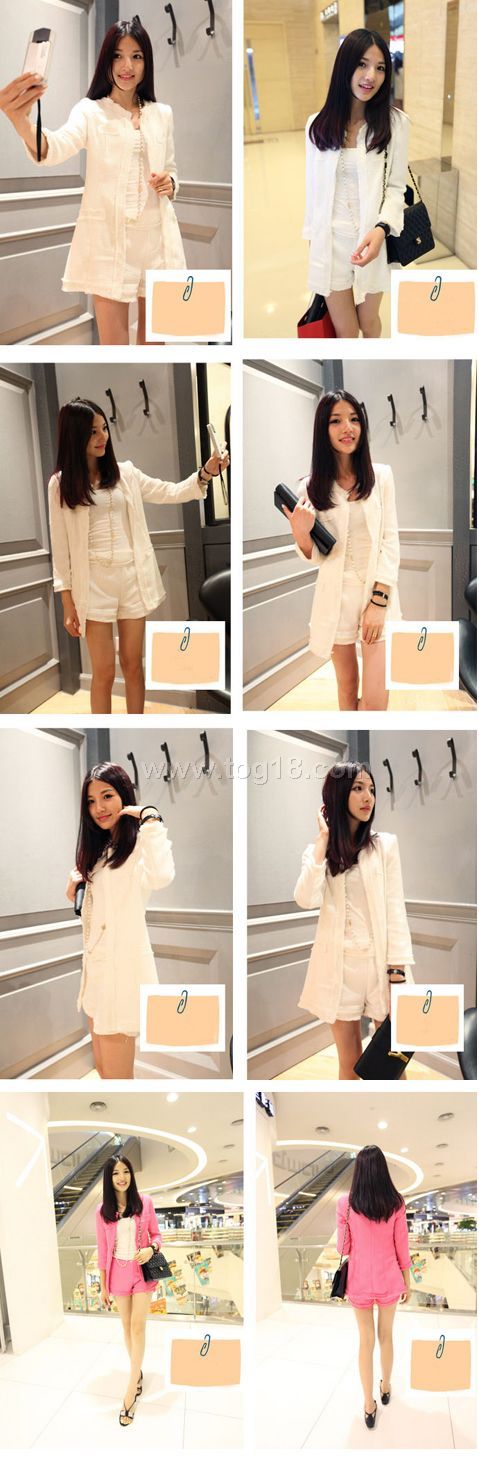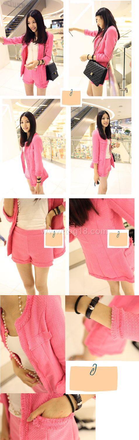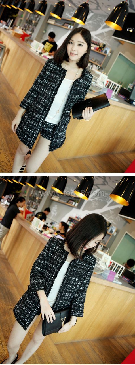 气质小香风 粗花呢七分袖 热裤 套装