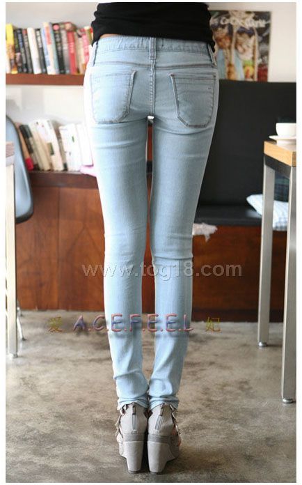 薄款牛仔 淺藍色牛仔褲小腳褲女 韓版緊身顯瘦鉛筆 打底 褲