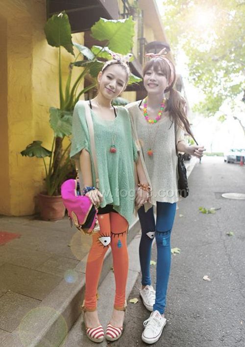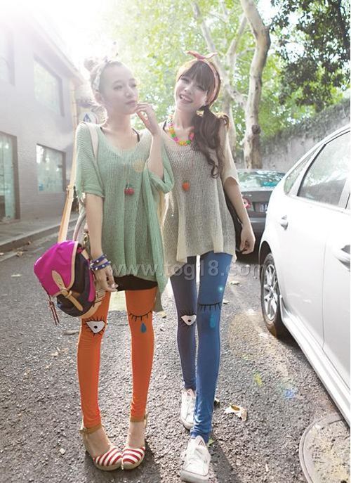 2012秋装新款俏皮搞怪卡通图案纯色弹力修身打底裤