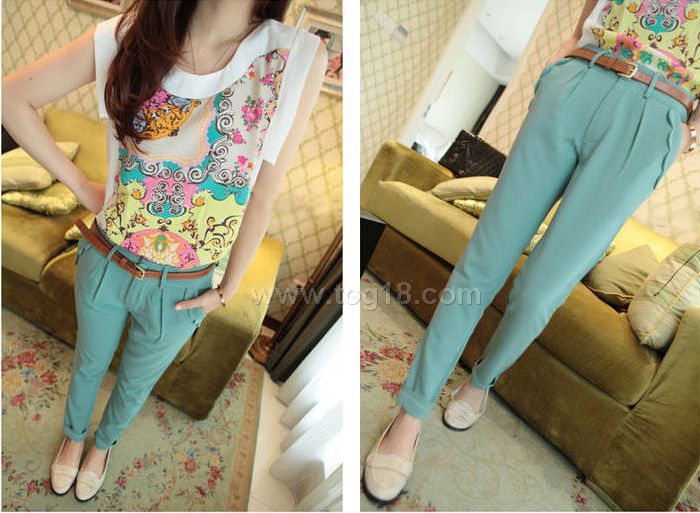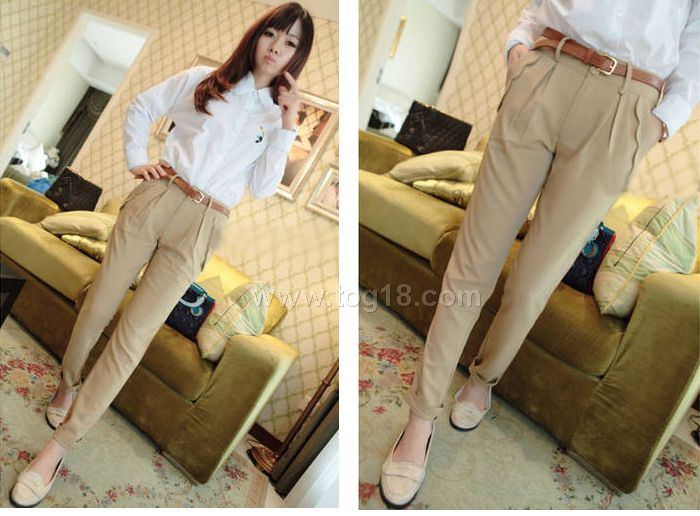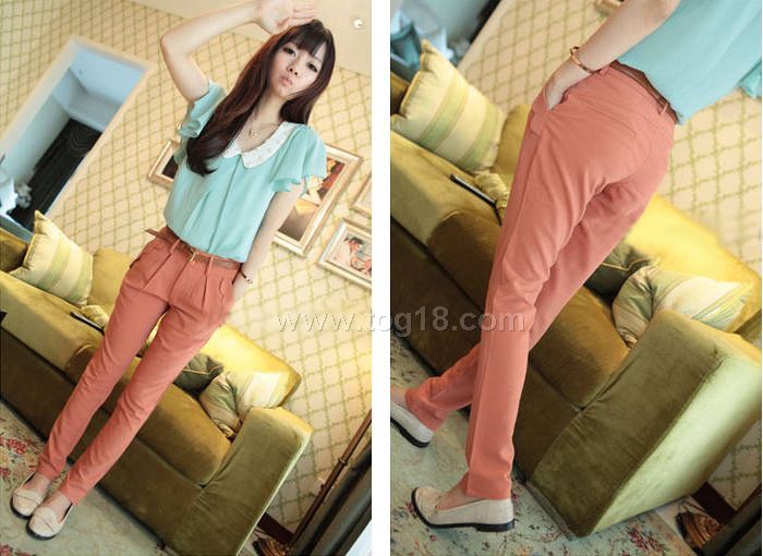 出色演绎西装裤波浪边OL 职业小脚西装裤多色