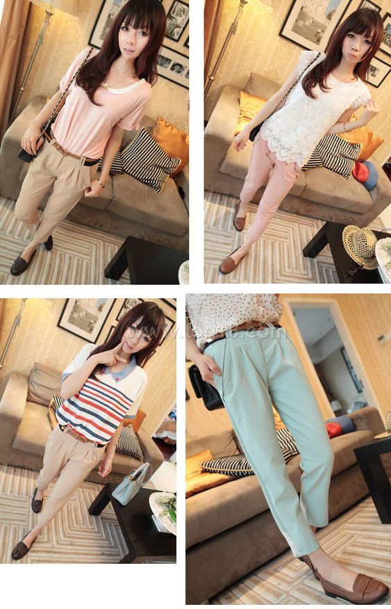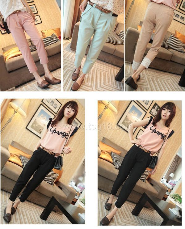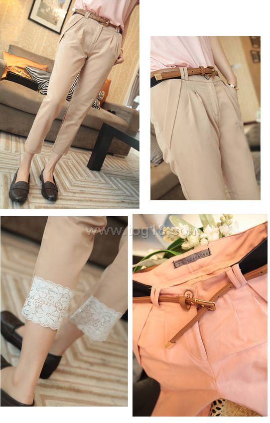 蕾丝后脚镶边 白领最爱西装8分裤 皮带送