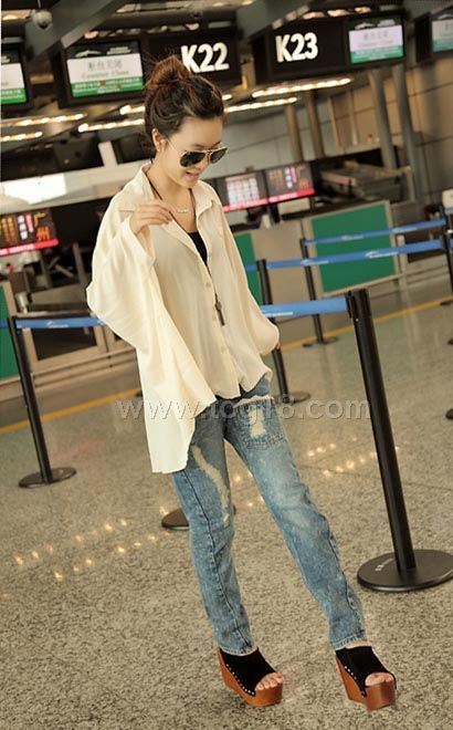 2012女装新款新品韩版水洗蕾丝装饰长裤牛仔裤( 次款最后