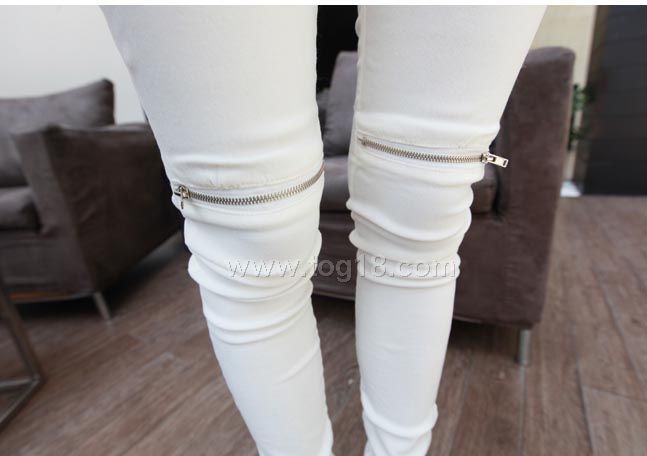 膝蓋拉鏈裝飾 洋氣款顯瘦白色打底褲子
