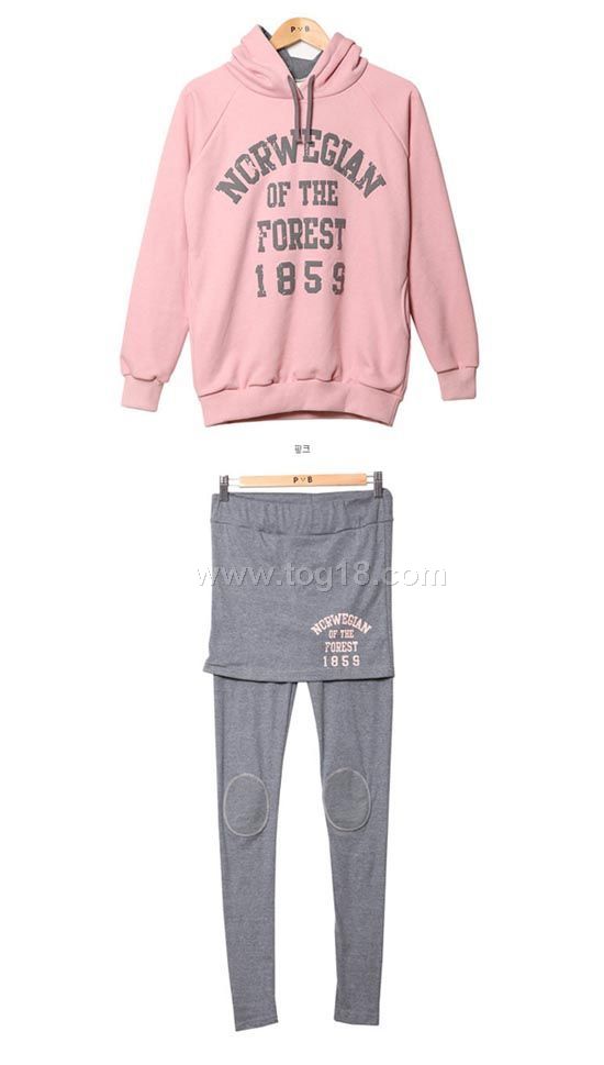 款式說明:秋冬必備經典的衛衣款,面料採用加厚衛衣棉.秋冬季十分保暖.打底褲也用加厚的超彈力面料生產,實物顏色為淺粉色,均碼尺寸.兩件套設計,值得擁有.