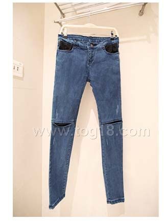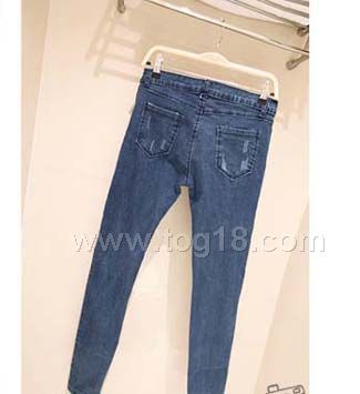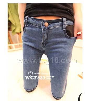 2012新款女裝百搭刺繡蕾絲口袋水洗牛仔褲 女褲