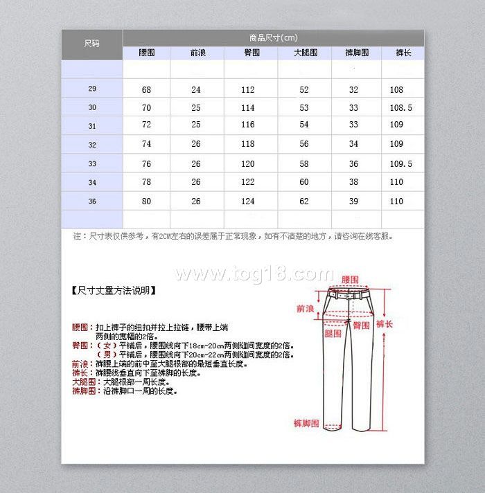• 尺碼: 29(2.23尺) 30(2.31尺) 31(2.39尺) 32(2.46尺) 33(2.54尺) 34可訂做3天內發貨 36可訂做3天內發貨