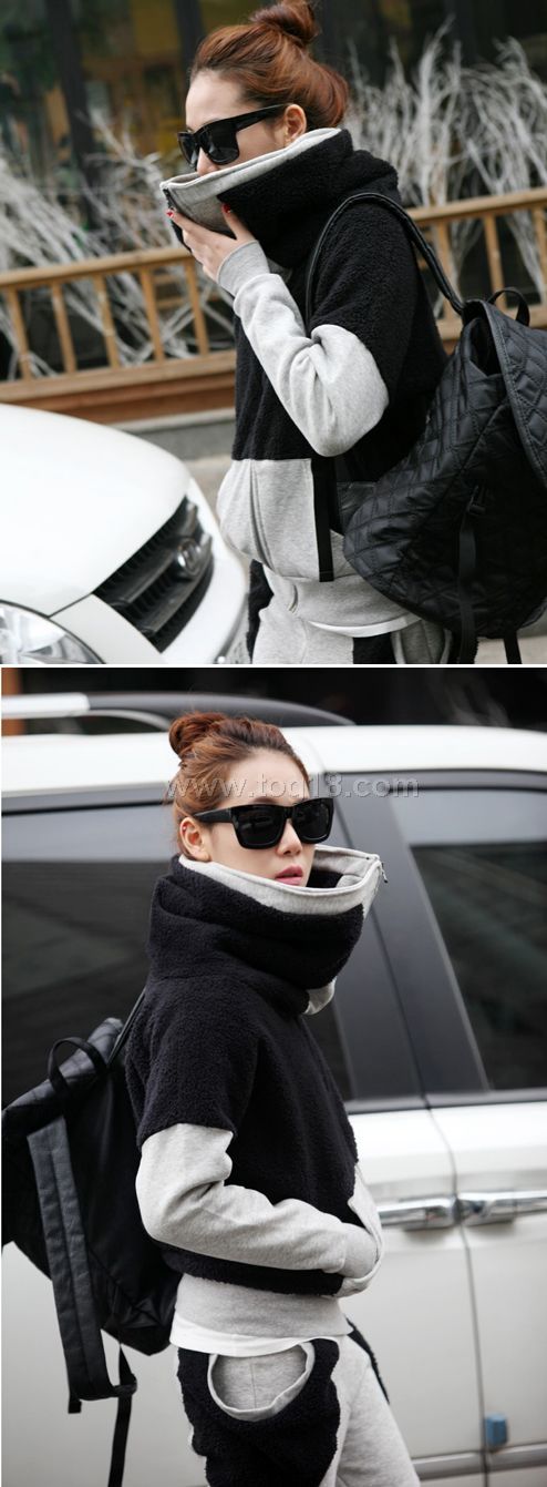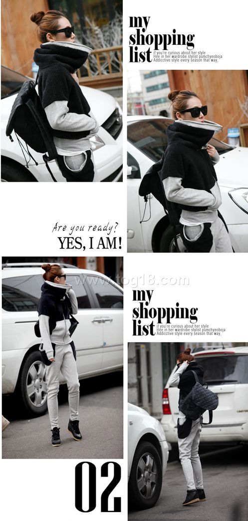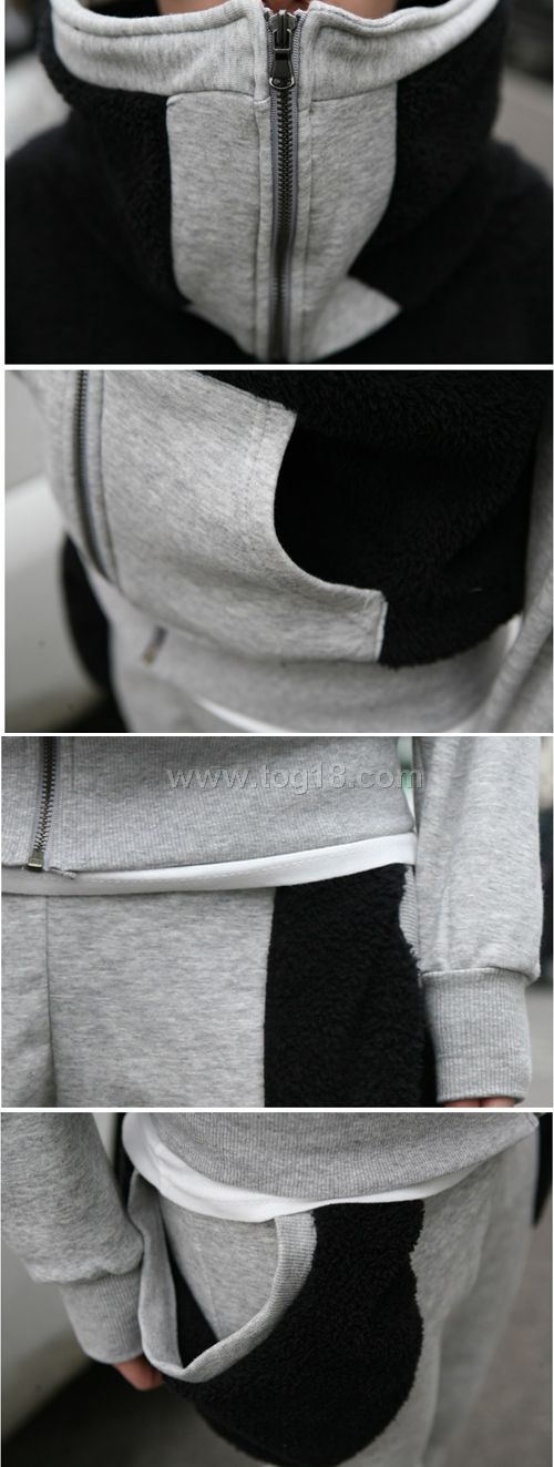 款式說明:今季最受歡迎的衛衣套裝,黑灰組合的拼色設計.帥氣時尚的休閒街頭風.兩種質材面料的接拼剪裁.版型上身效果很是修身,均碼尺寸.個性達人必備.