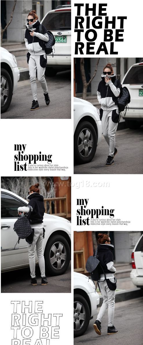 2012秋冬新品-休閒風個性衛衣拼色套裝