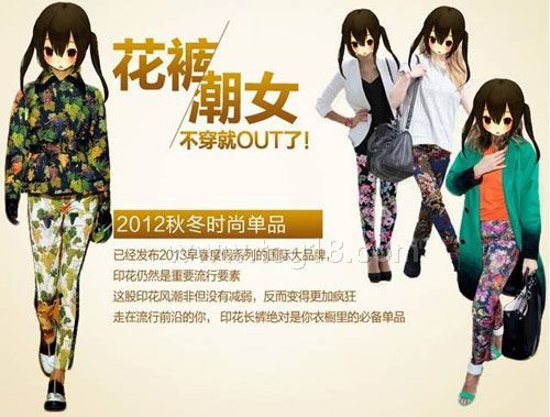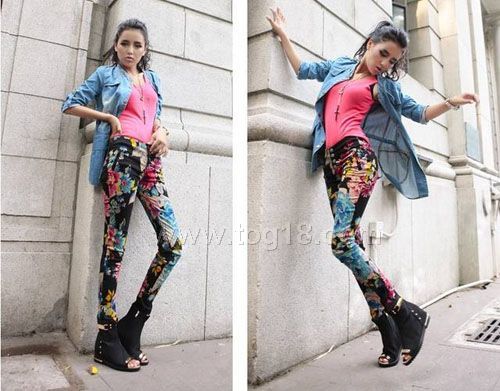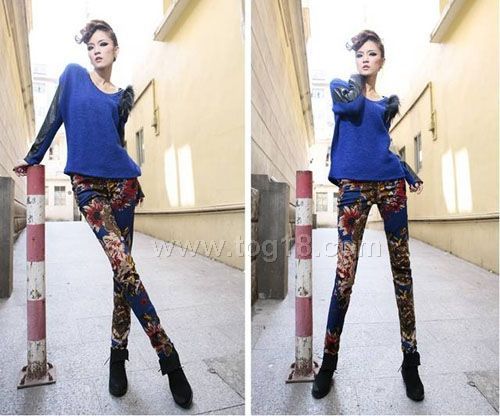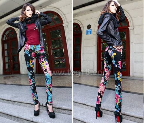 新品韩版印花弹力小脚铅笔裤 中腰长裤 女款 花裤子 潮裤
