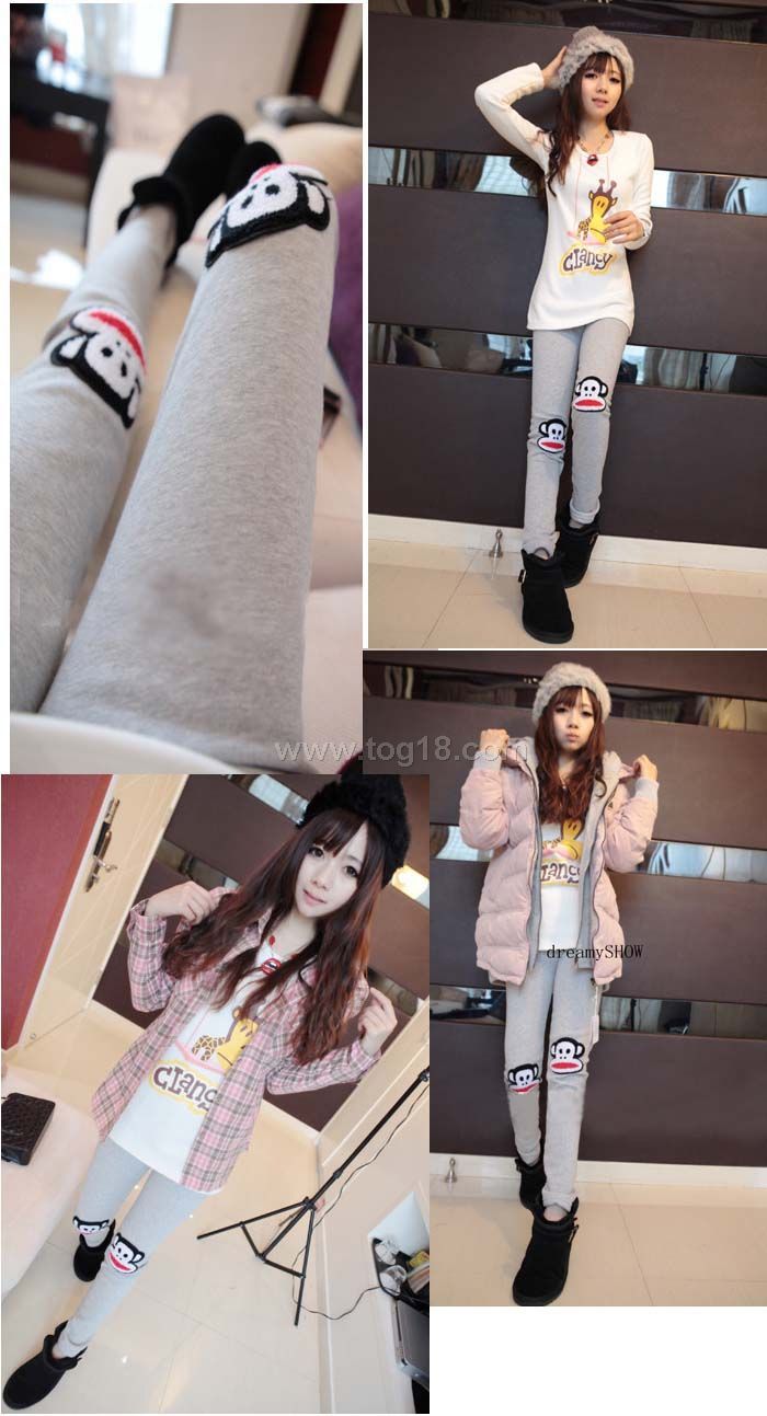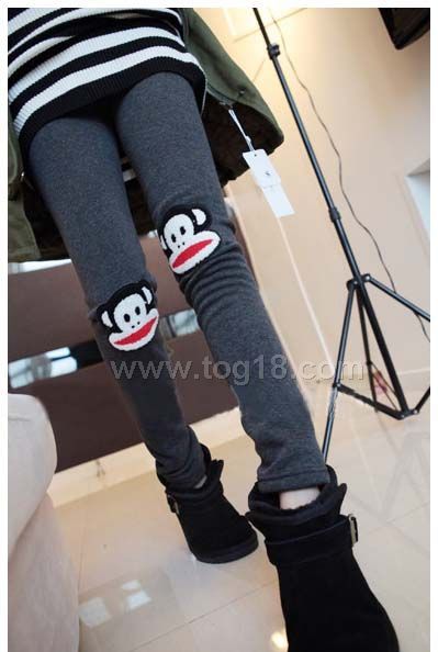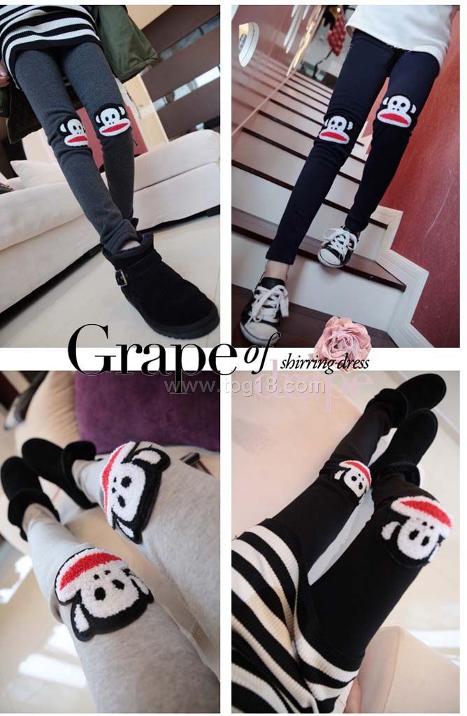 新款可爱 植绒卡通 大嘴猴 加厚绒 不怕冷 打底裤 超好质量