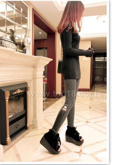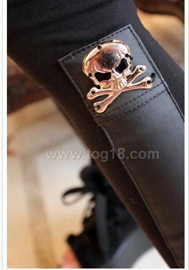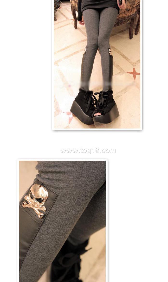 打底裤-是四季不可缺少的单品。打底裤选用优质的面料,弹力和贴身效果极佳,打底裤上小巧精致的骷髅头图案,俏皮中带了点小帅气,搭配长T恤,夹脚拖,我们一起出游吧~!