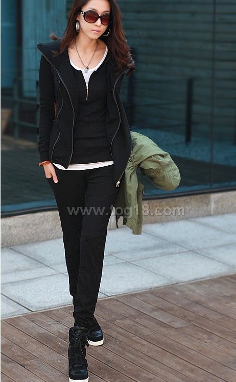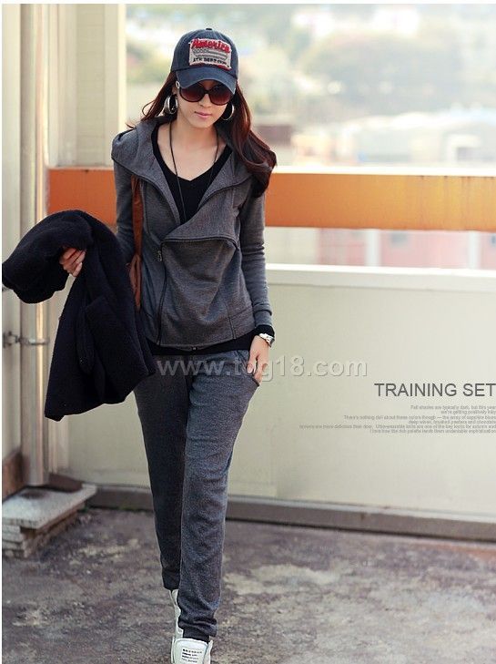 韩版秋装女款大码时尚休闲抓绒运动卫衣套装女款两件套