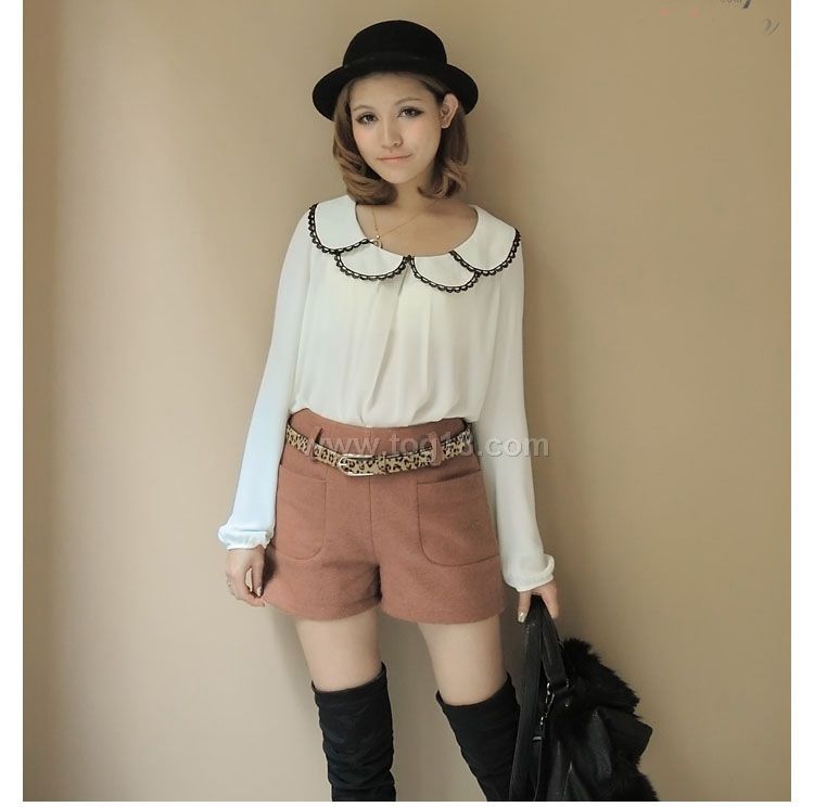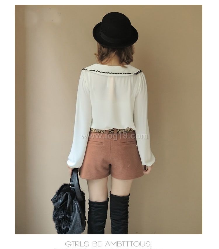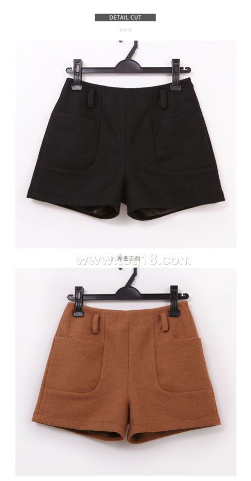 新款时尚新品甜美毛呢百搭短裤 皮带另加2元