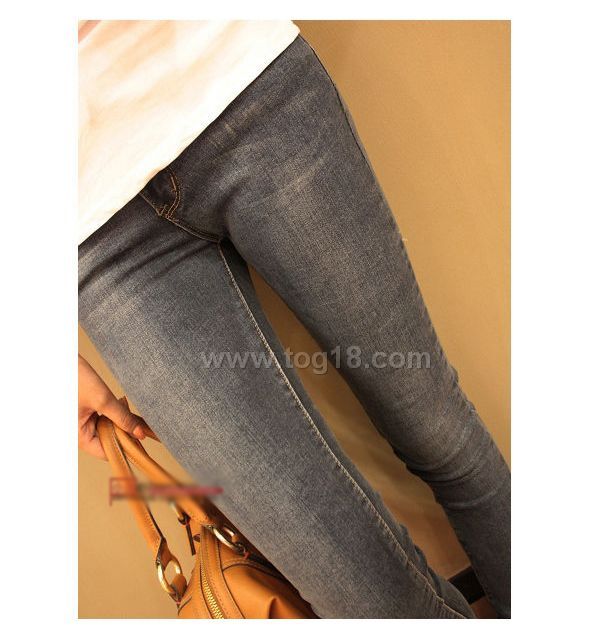 韩版怀旧水洗 显瘦猫抓磨白 紧身小脚裤 牛仔裤女 铅笔裤