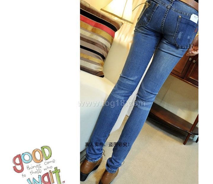 新款韩系带紧身显瘦弹力牛仔裤小脚裤铅笔裤女