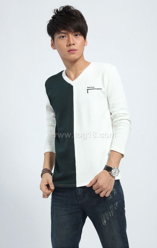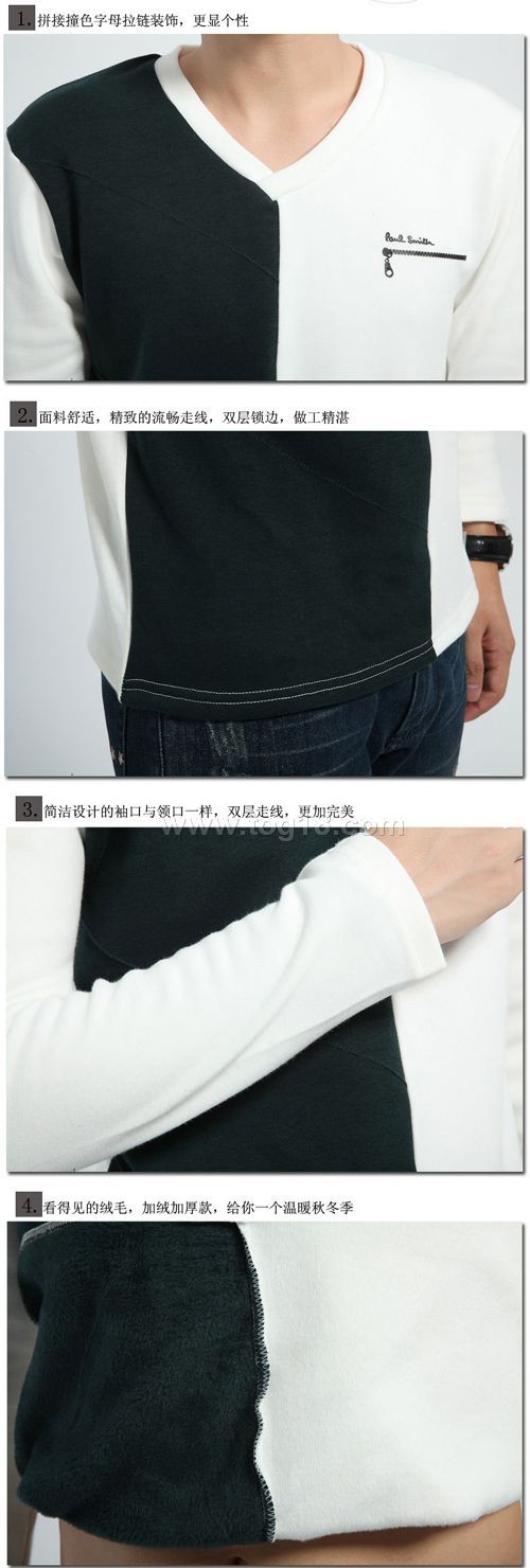 溫暖秋冬加絨加厚男士長袖T恤打底衫拉鏈字母拼色