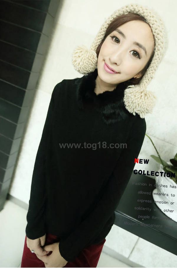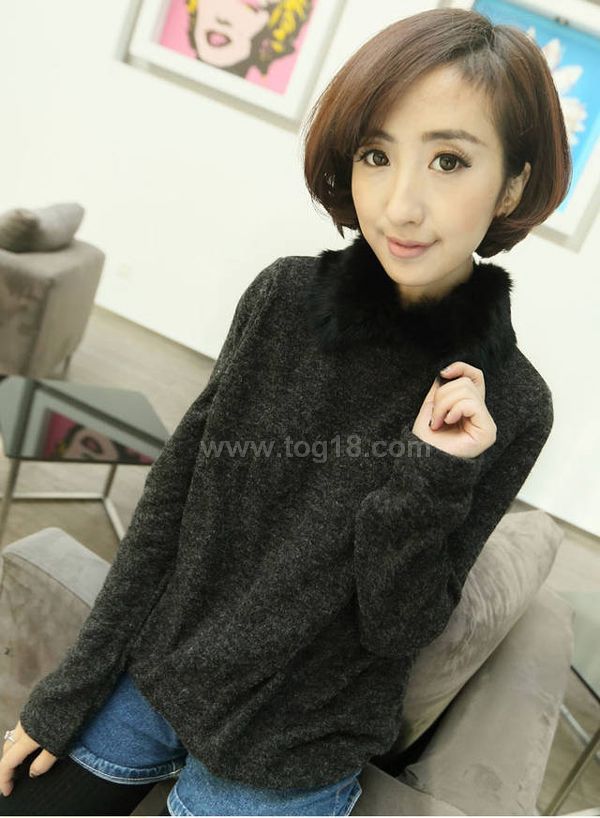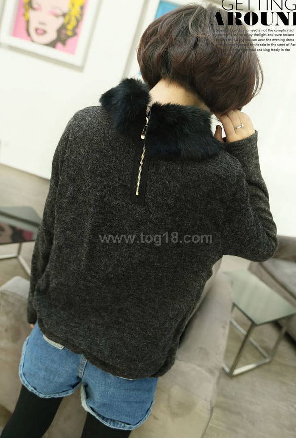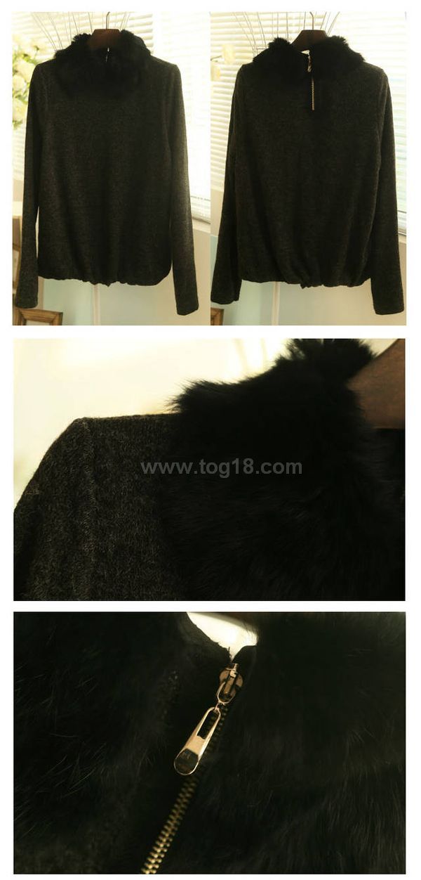 兔毛領後拉鏈拼接套頭毛針織衫打底衫
