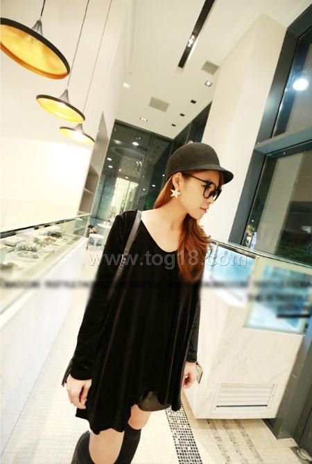超氣質 顯瘦 絲絨大下擺造型衫