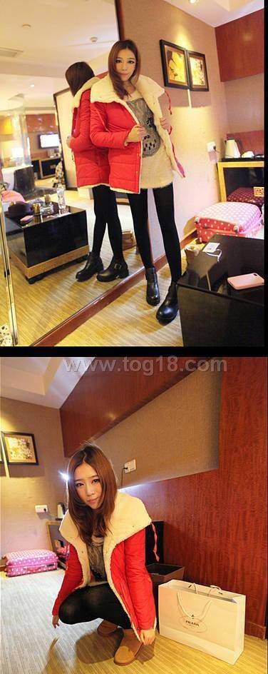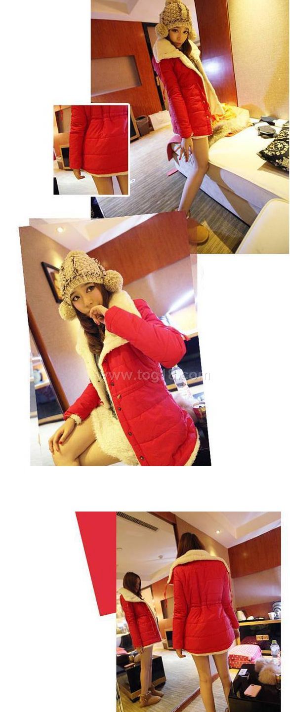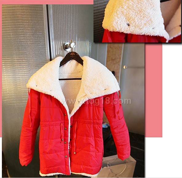 兩碼冬裝新款加厚亮色內絨棉衣 羊羔毛領大翻領保暖外套