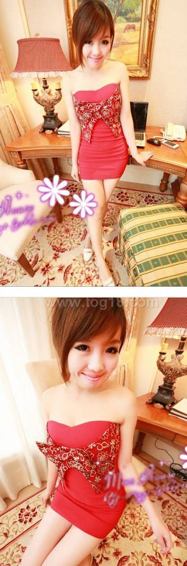 復古金色蕾絲大蝴蝶結抹胸連衣裙