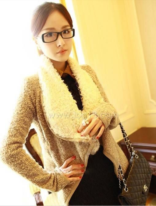 簡約歐美范兒 仿羊羔毛圈圈絨 大翻領顯瘦百搭外套