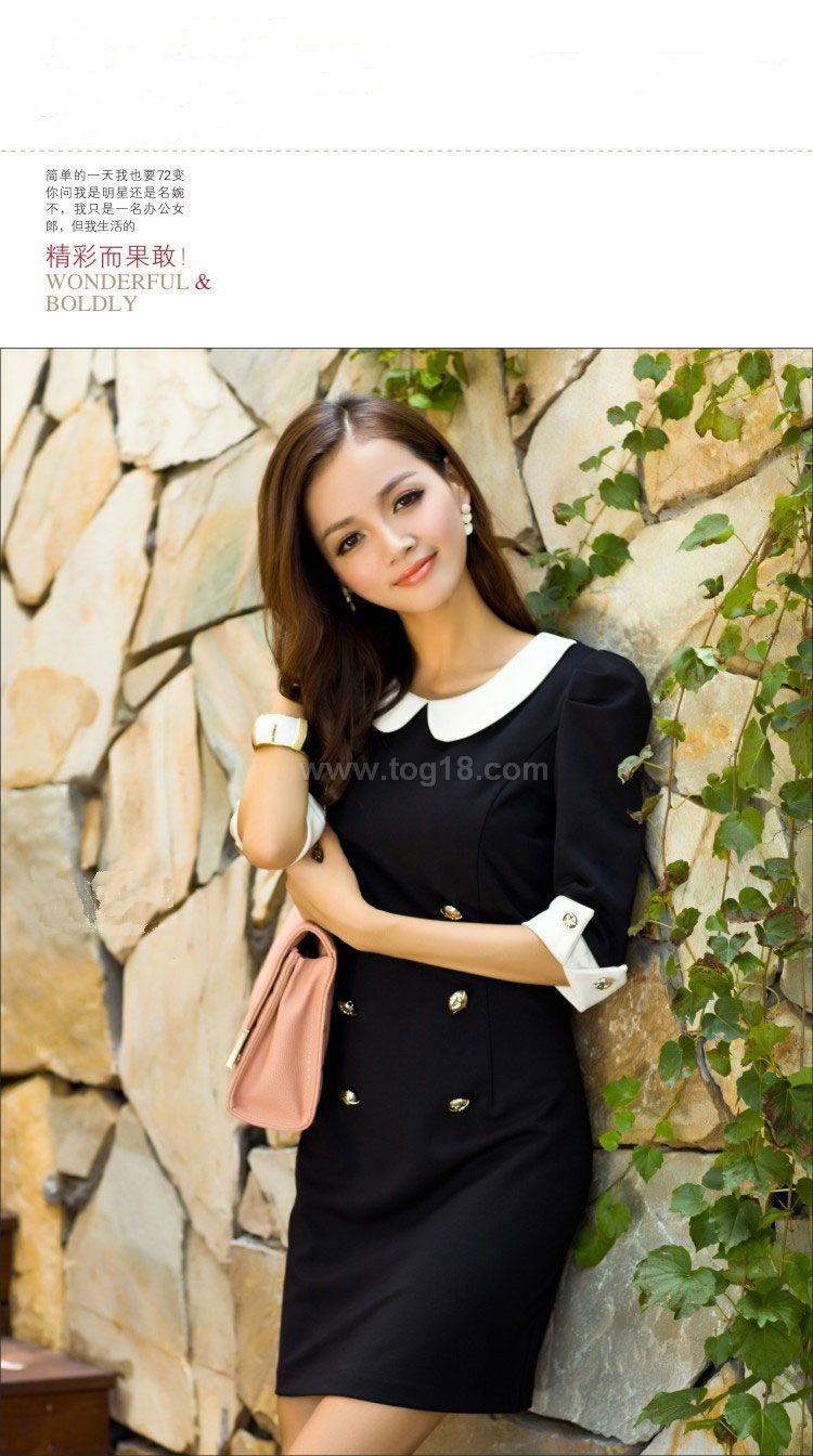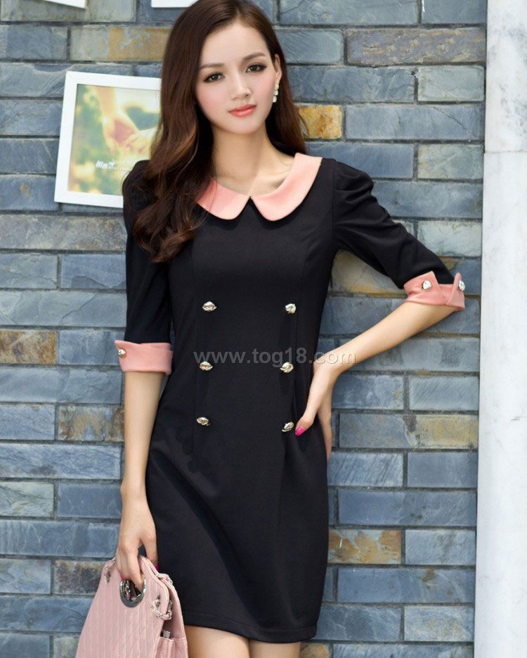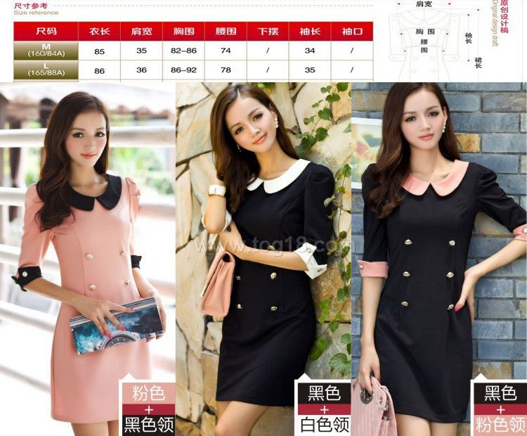 款式說明:韓版女裝公主娃娃領顯瘦修身針織中袖連衣裙