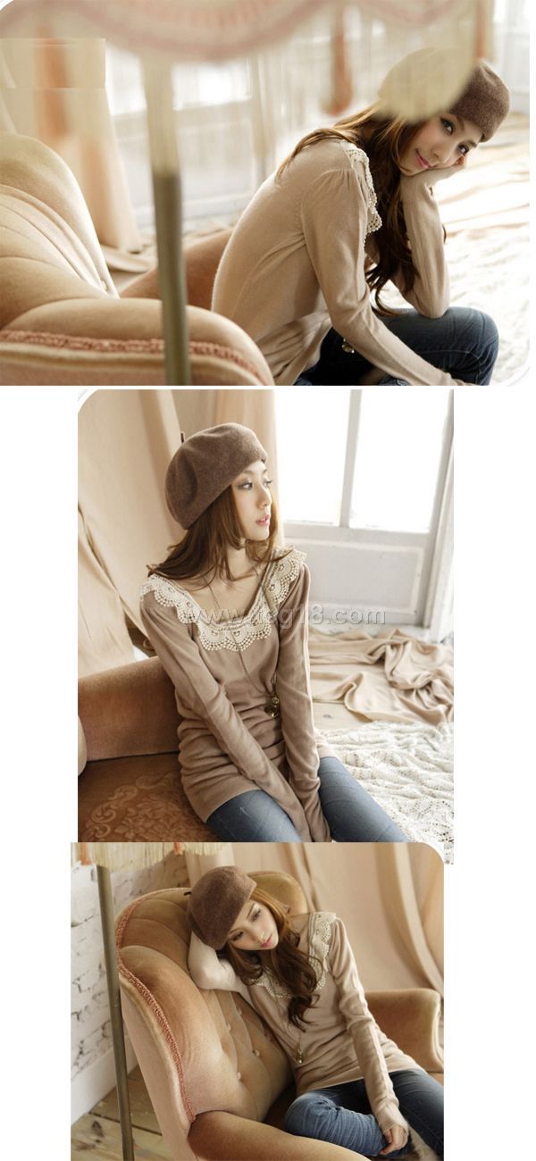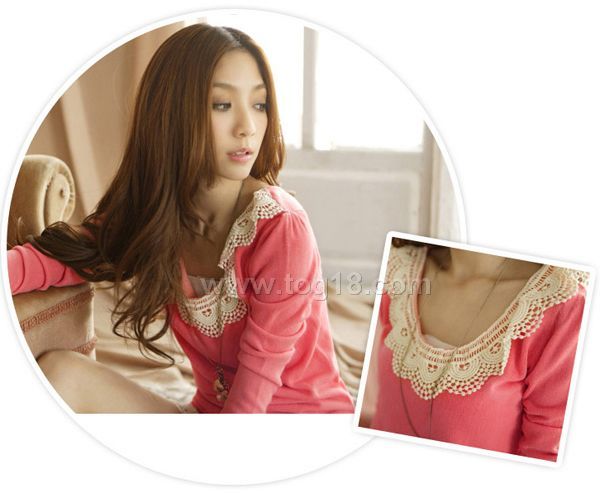 2012秋季新款韓版時髦舒適實搭花邊織網領棉質T恤二色
