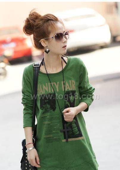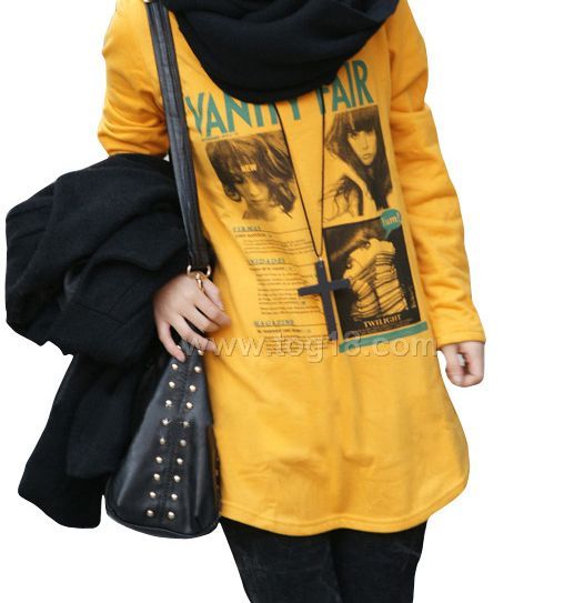 新款韓版女裝寬鬆長袖衛衣T恤印花長款包臀加厚打底衫