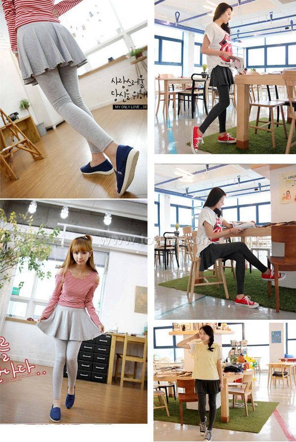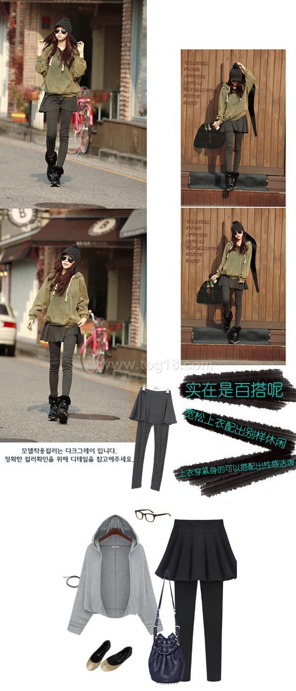 韓國 韓版顯瘦假兩件太陽裙褲打底褲 百搭防走光小腳褲