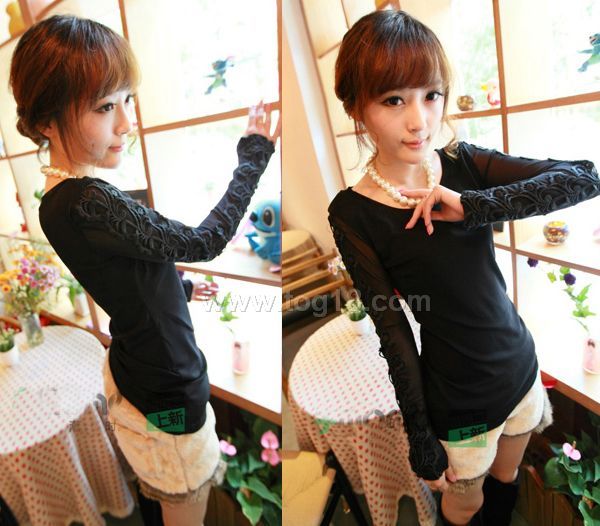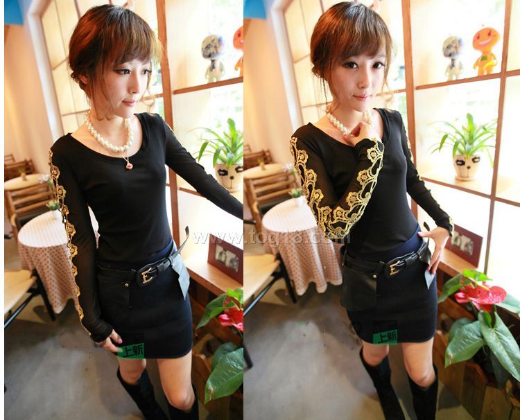 中國風刺繡修身版型的打底衫