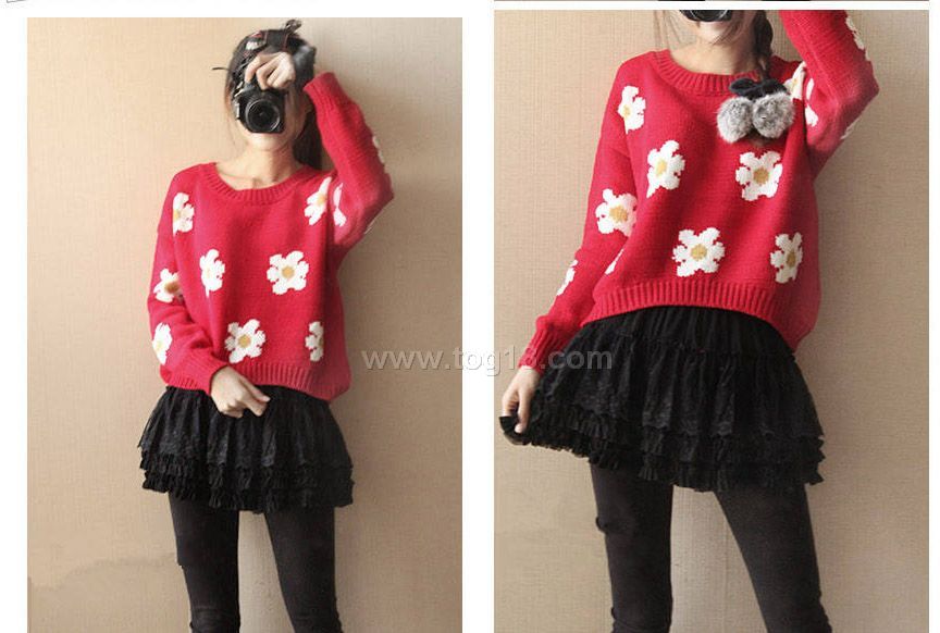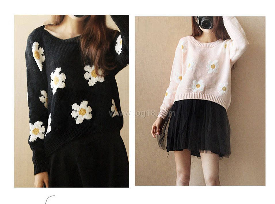 2012最新秋冬 新款雜誌模特 秀花朵 短款毛衣