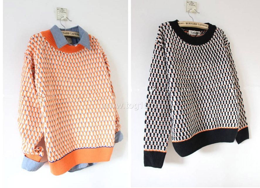 2012最新韓版 格子撞色 套頭毛衣 2色入