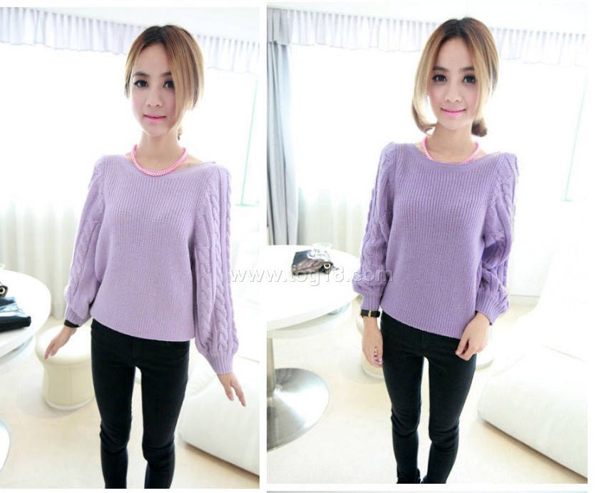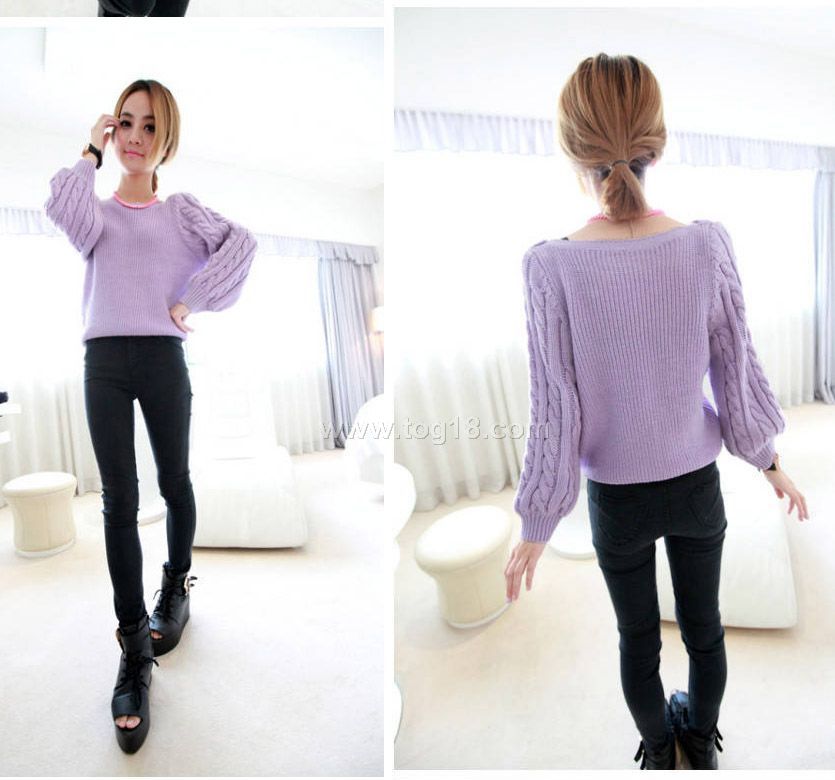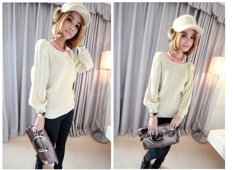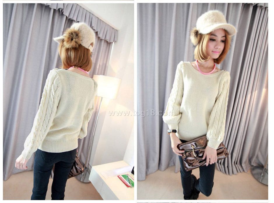 秋款上新 一字領麻花袖毛衣韓版女裝毛衣 兩色入
