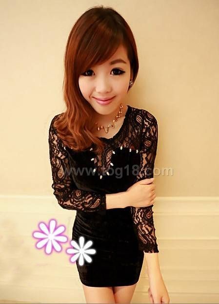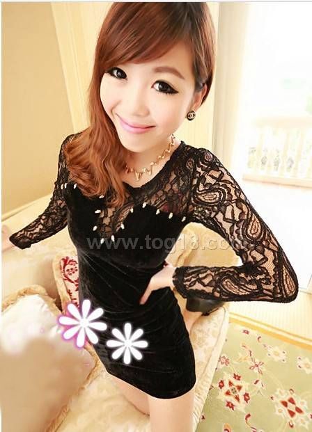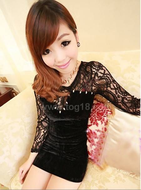 款式說明:名媛復古蕾絲拼接金絲絨高腰顯瘦包臀連衣裙