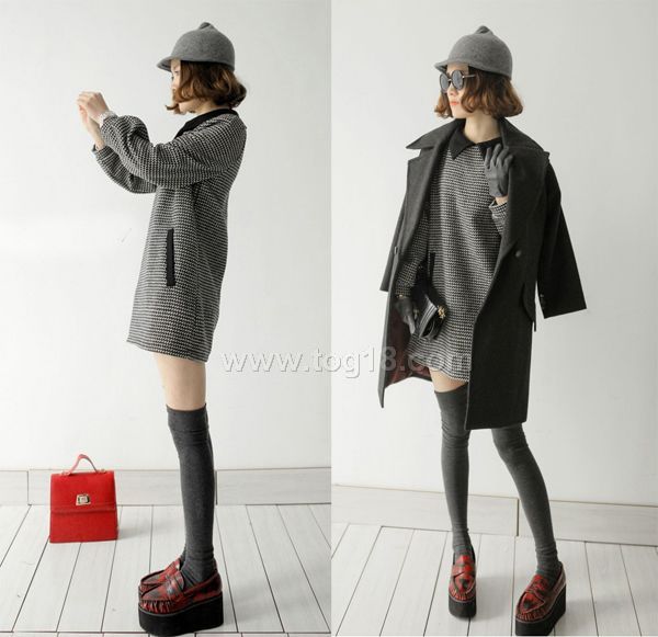 千鸟格一直真的是经久不衰啊,每年都必搭,再加上独特的拼色领子,真的是很NICE~