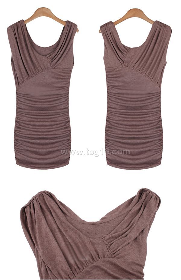 款式說明:性感夜店不規則V領褶皺修身包臀無袖連衣裙
